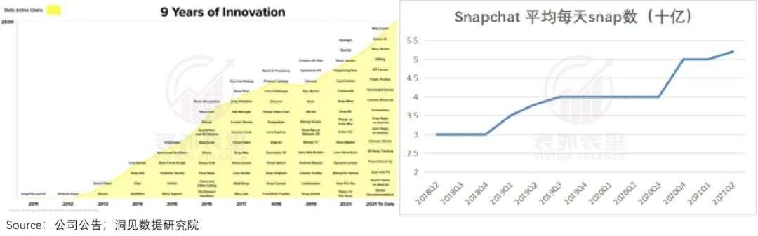 综合上述的转变和布局,Snap从单纯的社交工具,实现内容平台印记的加深。而这种变化,反馈在数据上就是:
