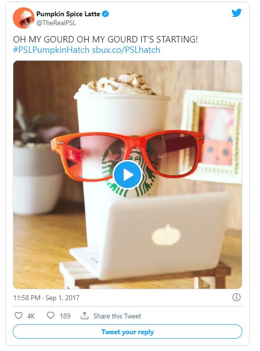 南瓜风味拿铁Twitter账号。图片来源:businessofbusiness