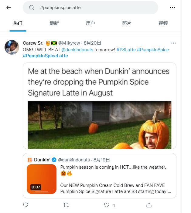 Twitter上南瓜风味拿铁相关话题。图片来源:Twitter