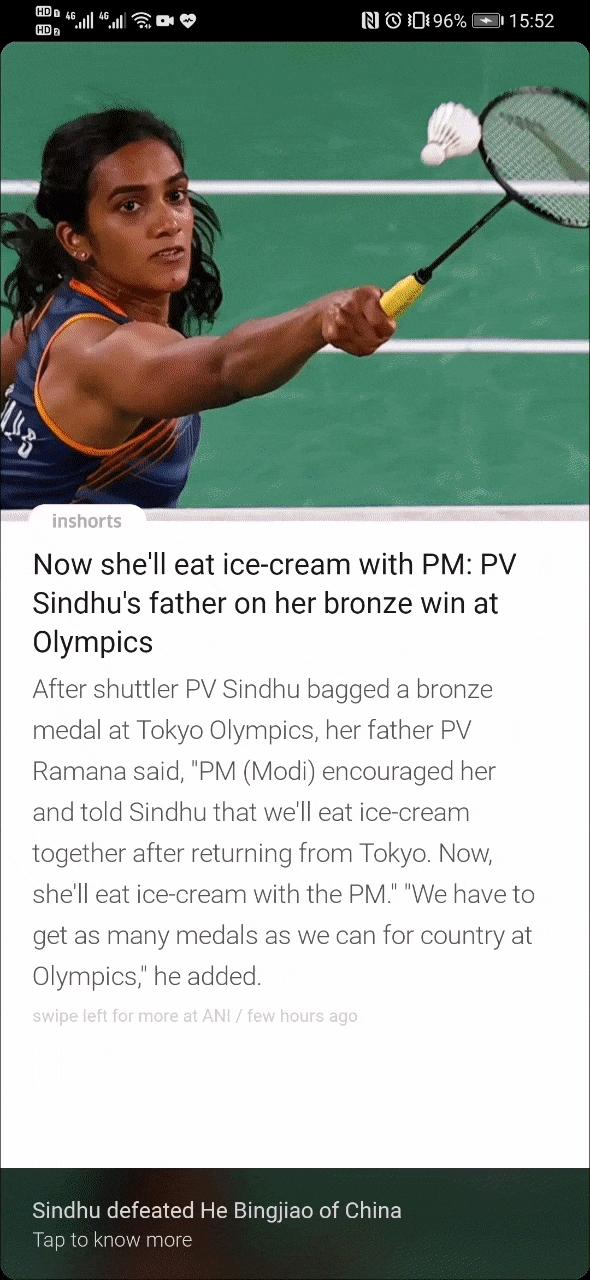 在Inshorts上看新闻的方式:刷刷刷。图片来源:爱范儿