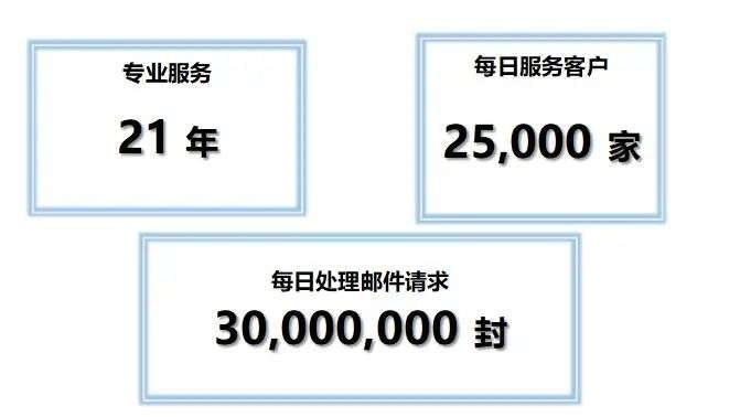 Coremail具有丰富的邮件安全经验。从2000年开始,Coremail一直致力于邮件反垃圾工作。CAC云安全中心每日支撑服务客户数量高达25000家,日均反垃圾分析请求量高达3千万封,日均截获高危恶意邮件超过100万。