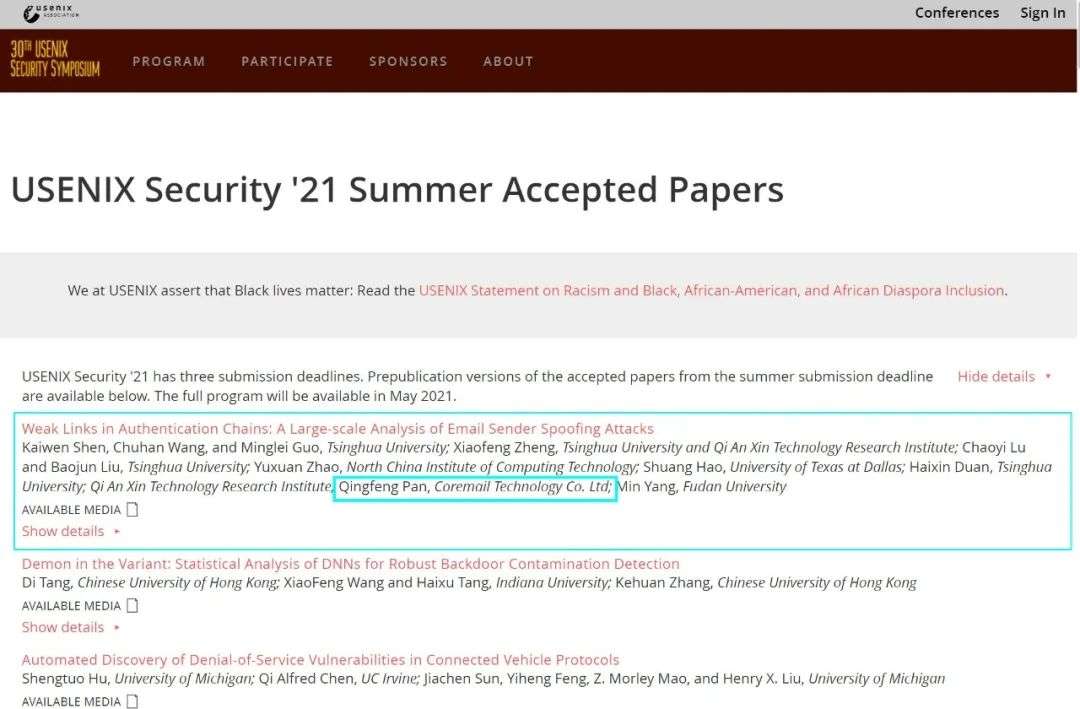 如何防范新型邮件发信人伪造攻击?Coremail 受邀分享最新研究成果!