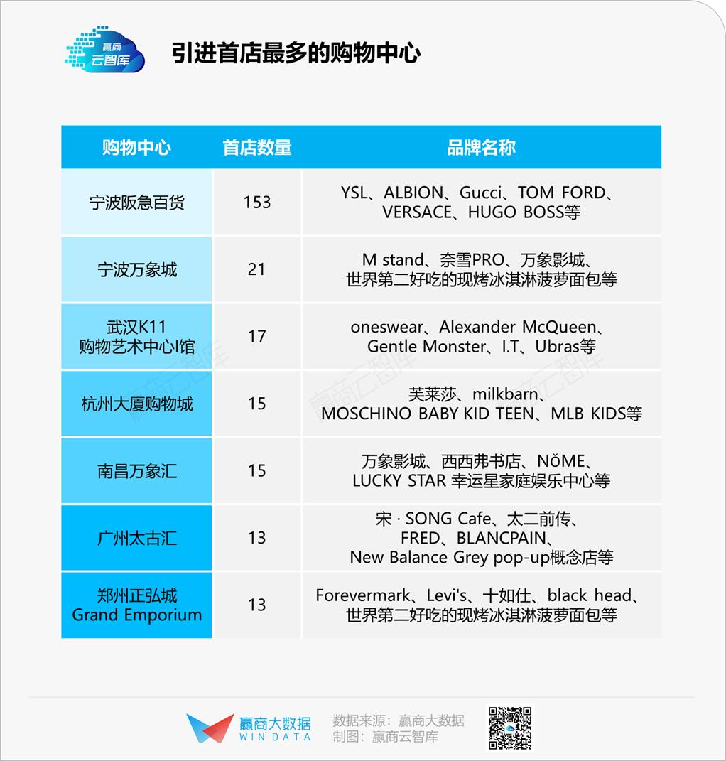 · 区域/城市首店:指品牌在某区域/城市购物中心开设的第一家门店或新概念门店