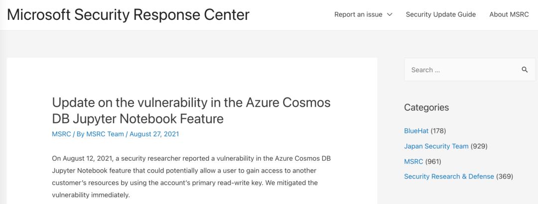 https://msrc-blog.microsoft.com/2021/08/27/update-on-vulnerability-in-the-azure-cosmos-db-jupyter-notebook-feature/