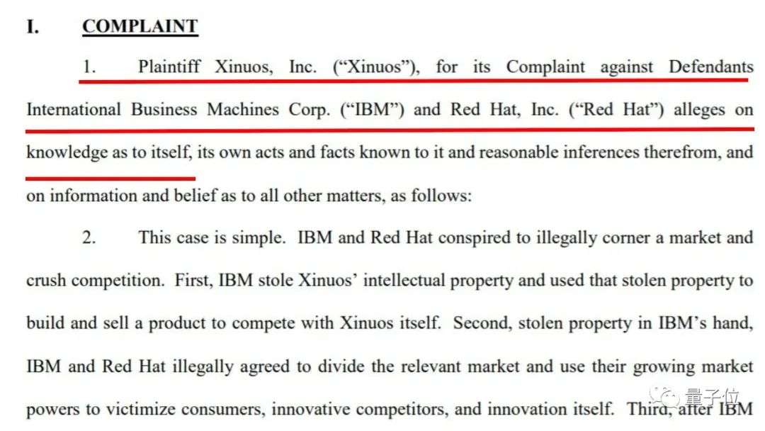 但在5年后,Xinuos又一纸诉状,控告IBM和Red Hat公司版权侵权和反垄断: