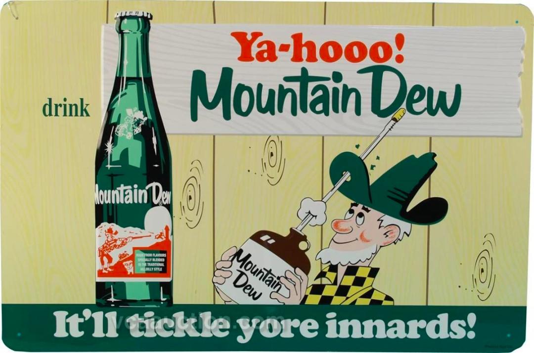 而激浪的奇怪本名mountain dew,是土法调酒的俚语。它的诞生与可口可乐一样,颇有点无心插柳的意思。