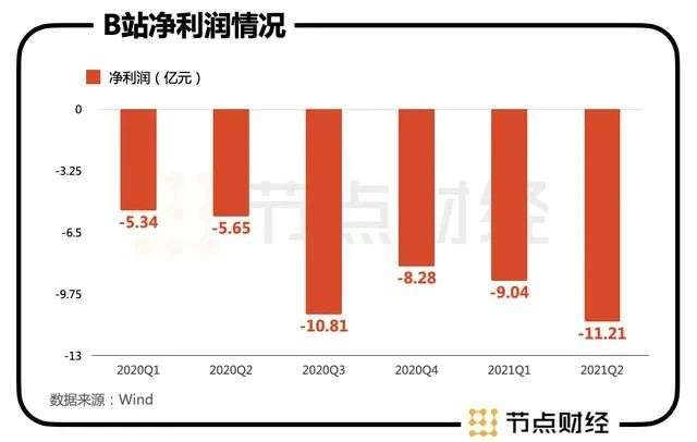 相比第一梯队的流媒体,B站还在增长期,在二季度其平均月活达到2.37亿,同比提升了37.8%。但相比亏损收窄的爱奇艺与优酷,B站在二季度营收44.9亿元,同比增长72%的情况下,净亏损达到了11.22亿元,同比扩大了接近一倍。
