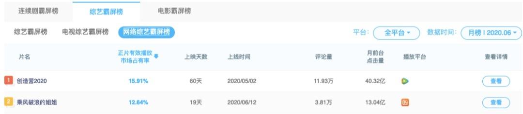 作为竞争者的芒果TV,也面临相同的不确定问题。去年《乘风破浪的姐姐》创造拉新记录后,今年的第二季明显声量要弱了不少。据云合数据显示,第一季截至去年年底正片有效播放量6.08亿,而第二季截至今年6月底仅2.66亿。