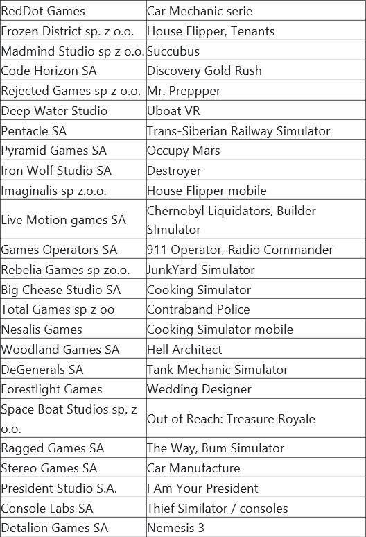 与Techland和CDPR集中力量做大作,几年才出一款产品的开发理念不同。PlayWay有着更多、更分散的开发团队,且更注重小体量“Simulator”的开发,一年至少可以发行十款产品。