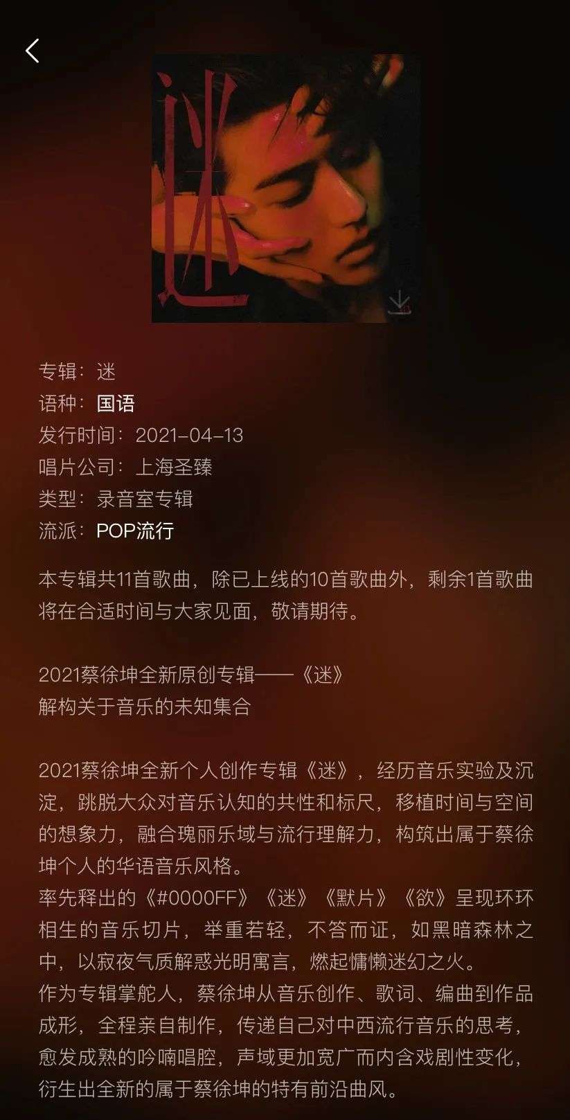 蔡徐坤的数字专辑《迷》在发布四个月后,以334万张、8697万元的销售额紧随其后。八千万的销售额,对于主业为音乐人的偶像歌手而言,是一笔相当重要的线上收入。不同于以其他业务反哺音乐事业的偶像,对于更依赖音乐人身份的偶像而言,在代言、综艺之外,面对的是传统音乐人的必经之路。