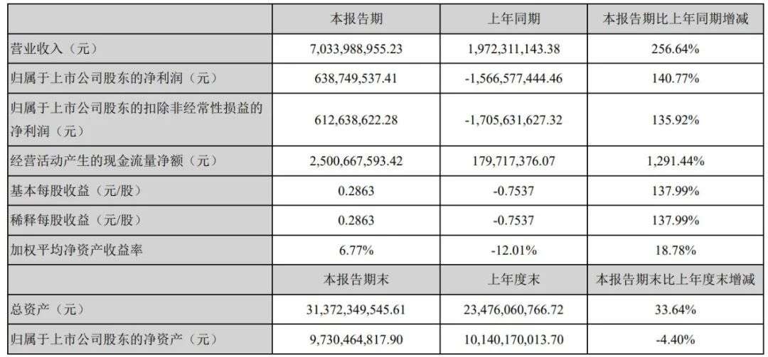 业绩:上半年营业收入70.34亿,较上年同期增长了256.64%,归属上市公司股东的净利润为6.39亿,较上年同期增长了140.77%。