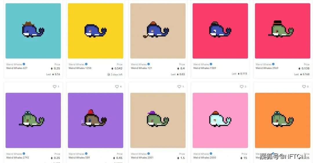 2021年7月,艺术创作者本雅明·艾哈迈德上线了自己的NFT《怪异鲸鱼》系列,9小时就全部售罄,最终入账80ETH。这样一组各异的像素小鲸鱼给艾哈迈德带来了超过35万美元的收入,而他今年仅有12岁。