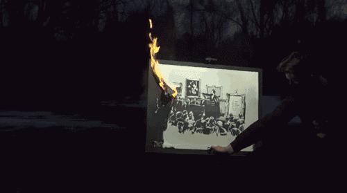 直播画面里,蒙面的持有者点燃了《Mornos》。画作熊熊燃烧,《Mornos》完成了从实体艺术品到NFT艺术品的转变,火光似乎正向全世界预告着,NFT艺术的时代正式来临。