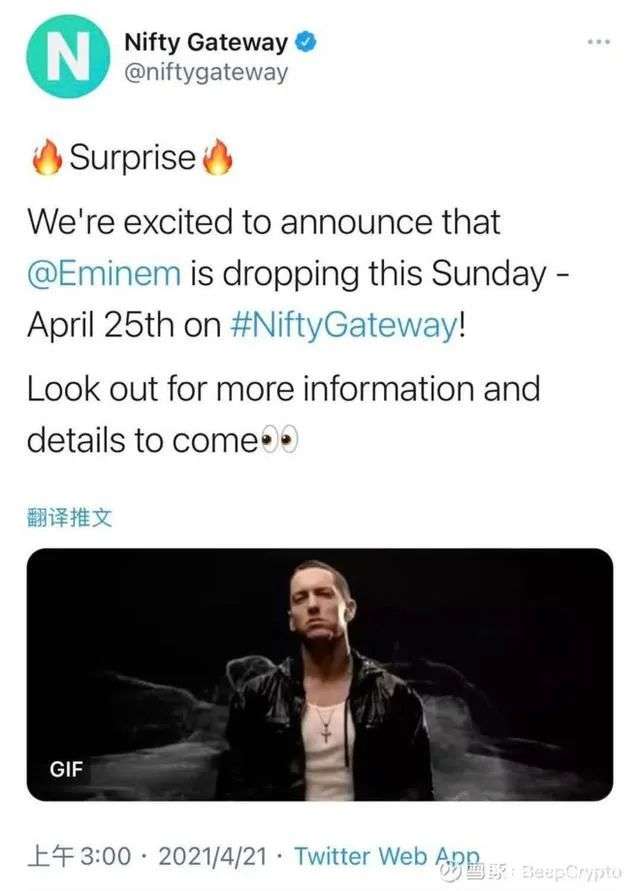 知名说唱歌手艾米纳姆也推出了NFT,图源雪球