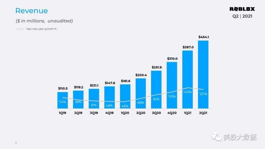 该公司第二季度业绩强劲,Roblox的平均日活跃用户同比增长29%,达到4320万。收入同比增长127%,至4.541亿美元。
