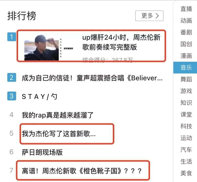 到后来,B站音乐区排行榜都被续写歌曲纷纷攻占了。