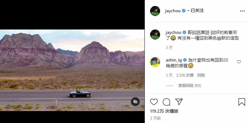 于是在两天后的晚上,周董爽快地履行了诺言,在ins上发布了新歌的前奏和MV。
