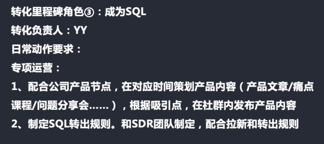 因为SDR团队是一直有往社群里拉新的,但是SDR的考核标准,又是他们转出的数量,所以我们就把他的拉新和数量对齐在一起,让他们往群里面拉新,社群运营做好社群转出的规则,去给到SDR,帮助他们做社群的转化。