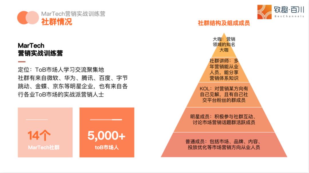 我们现在有两类群,一类是我们的营销实战训练营,里面是符合致趣百川客户画像的人群。他们全是市场营销人员人员,所以我们要给他,关于如何做好市场部,如何提高市场业绩方向的内容,去给到他们。