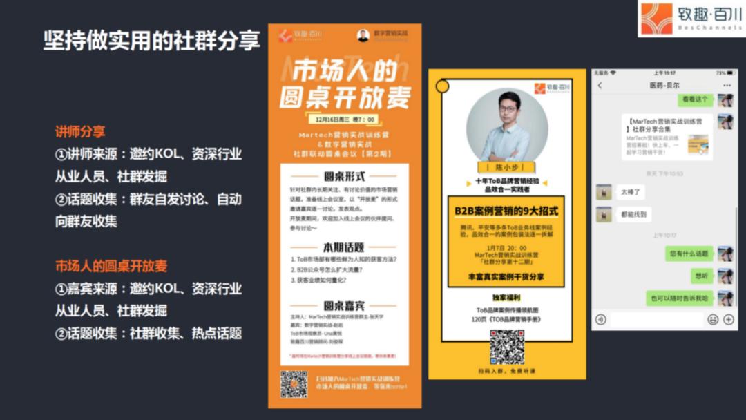 如前所述,致趣百川社群最早的出发点,就是想孵化和打造“致趣百川是一个在B2B领域很懂营销策略”的品牌形象。