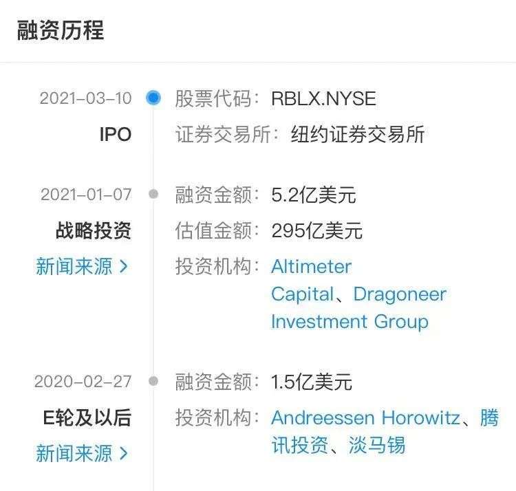 Roblox融资历程,图源企查查