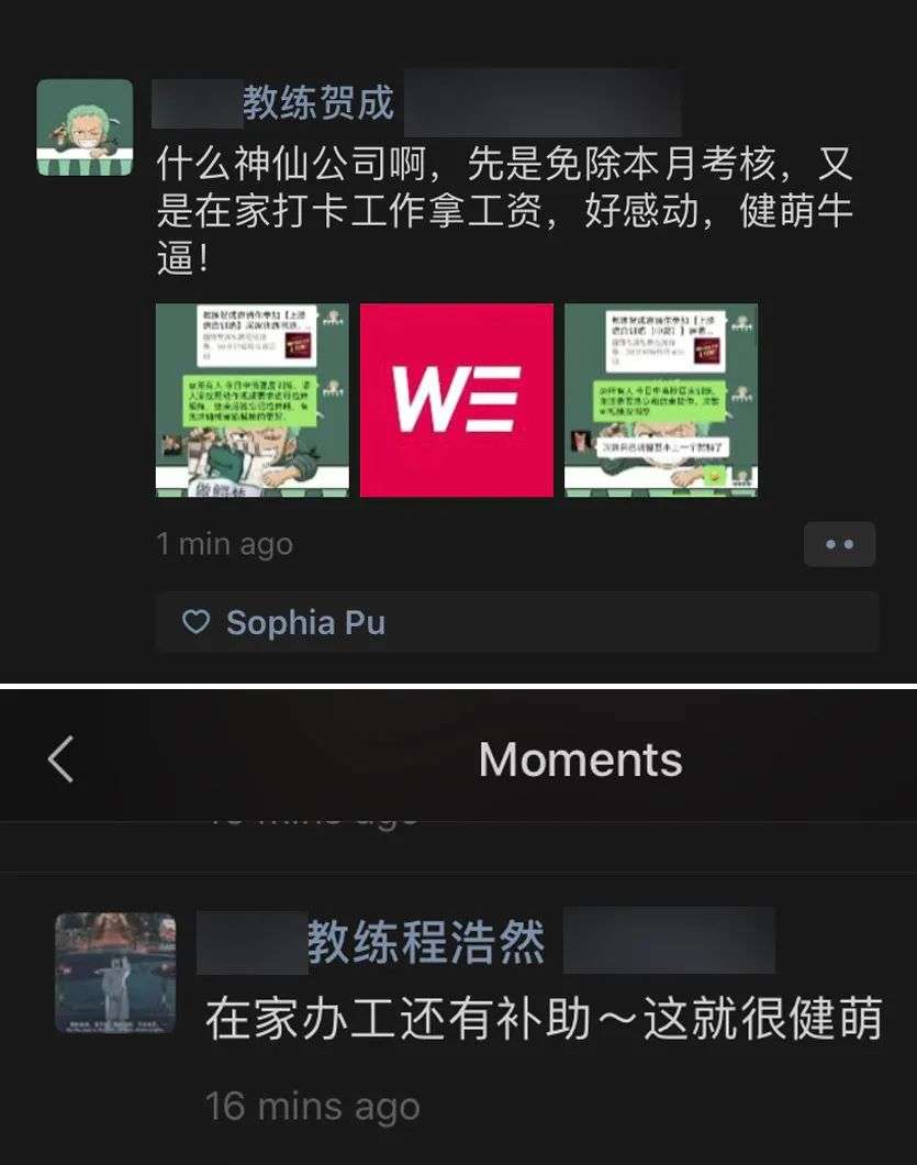 “居家隔离期间,所有教练发放薪资补贴;依照教练星级,按一星-二星教练100元/天,三星-五星教练150元/天标准发放。”