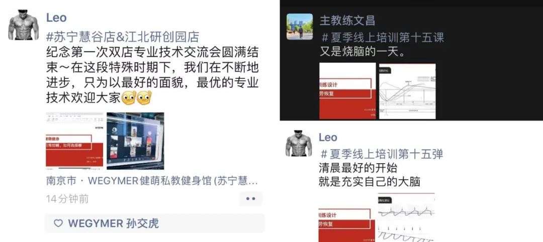 线下虽然停工,但是教练学习和会员服务一直在继续。