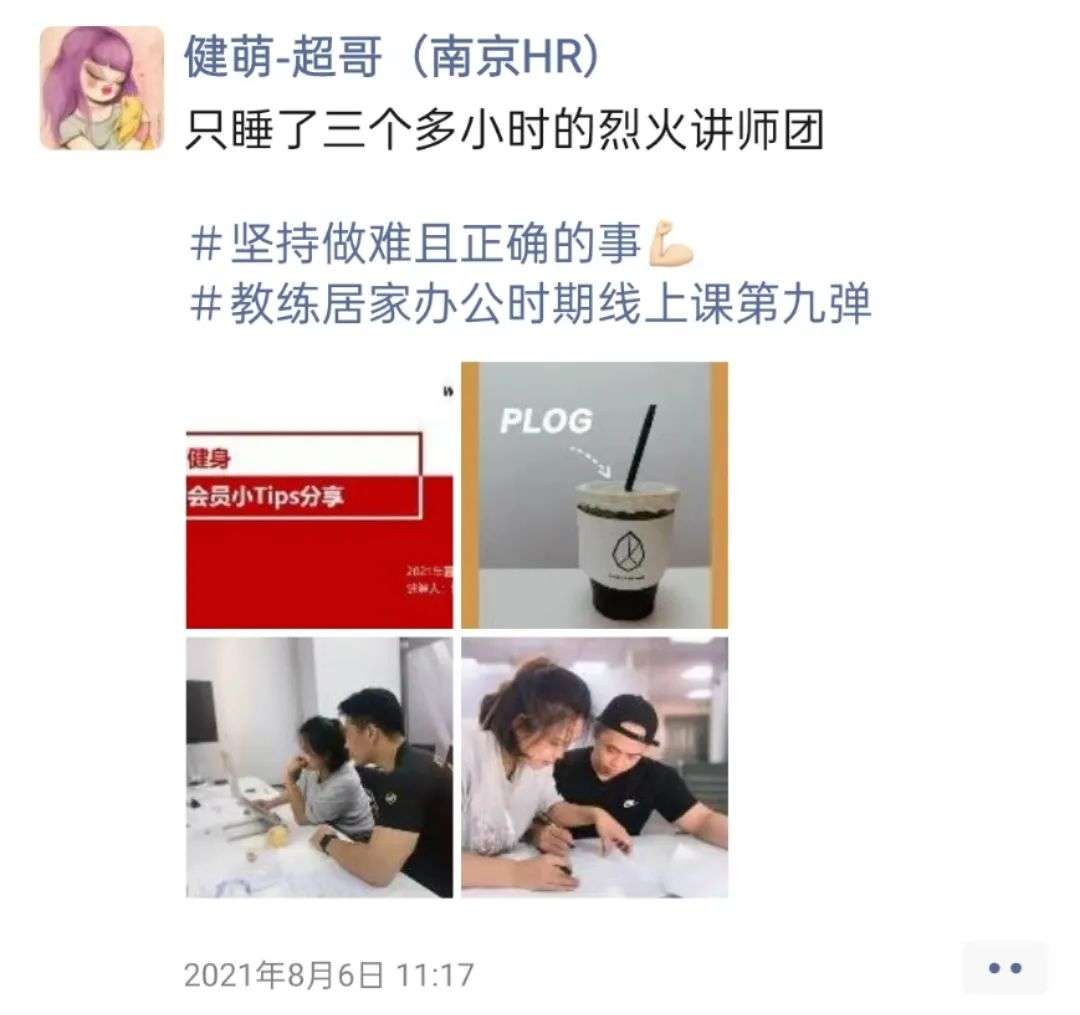除此之外,在闭馆期间,健萌南京也一直保持着全员在线的状态,针对教练与会员都做了细致规划——为所有教练组织线上培训,为所有会员提供免费的线上指导。