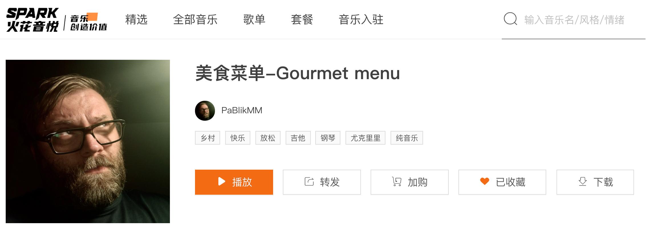 《美食菜单-Gourmet menu》来自火花音悦签约音乐人PaBlikMM。PaBlikMM是一位来自捷克共和国的电影及多媒体作曲家/制作人,曾经为众多电视、电影、纪录片、电子游戏等创作音乐。