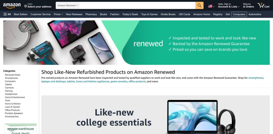 Amazon 同样拥有专门的 翻新产品板块 ,覆盖范围相当全面,从电子产品到园艺工具,无所不包。这些产品均由供应商或亚马逊官方进行全面检测、维修、清洁,所有功能正常,外观无明显瑕疵,价格更实惠。如果购买的翻新产品出现质量问题,你还可以享受 90 天免费退换货服务,使用无忧。