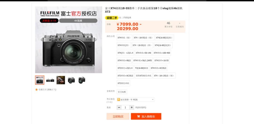 富士次新品在中国大陆仅通过官方特许线上渠道代理销售,目前的授权经销商包括三家淘宝店铺与一家京东店铺,涵盖相机机身、镜头和配件等,价格比较划算。如富士 XT-3 单机身官翻定价 7099 元,新款定价则为 8990 元,优惠近 2000 元。