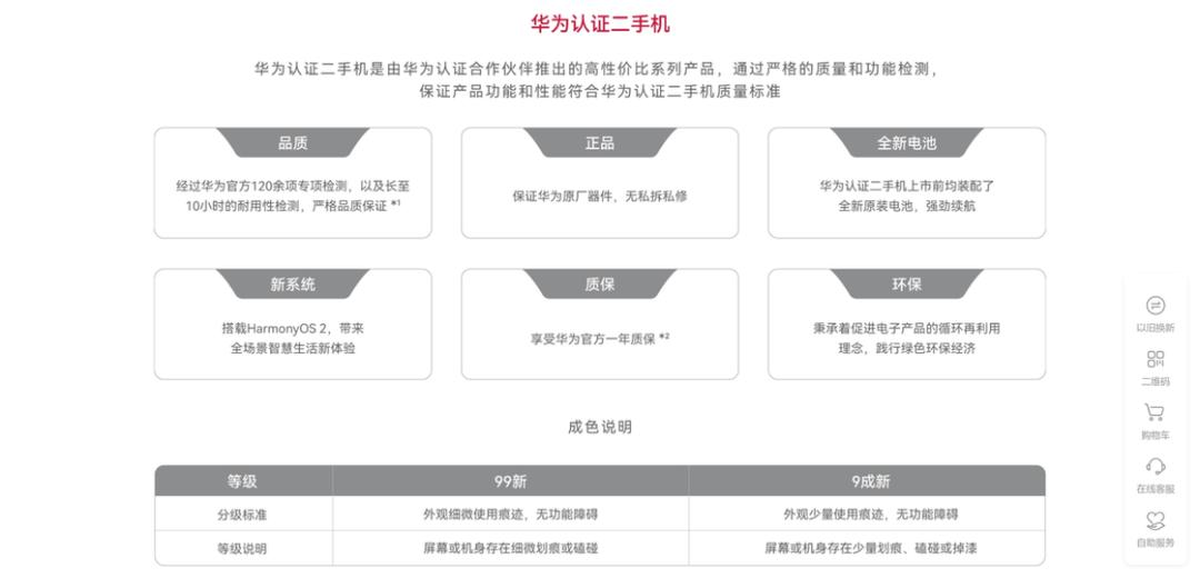 严格来说,华为认证二手机并非官方翻新手机,而是由华为认证合作伙伴回收的二手产品,由第三方自行翻新,经过华为官方的严格质量和功能检测,保证产品功能和性能符合华为标准,虽然上架华为商城销售,但由合作商负责发货。华为认证二手机均装配全新原装电池,搭载 HarmonyOS 2,享受一年质保,分为 99 新与 9 成新两种成色。
