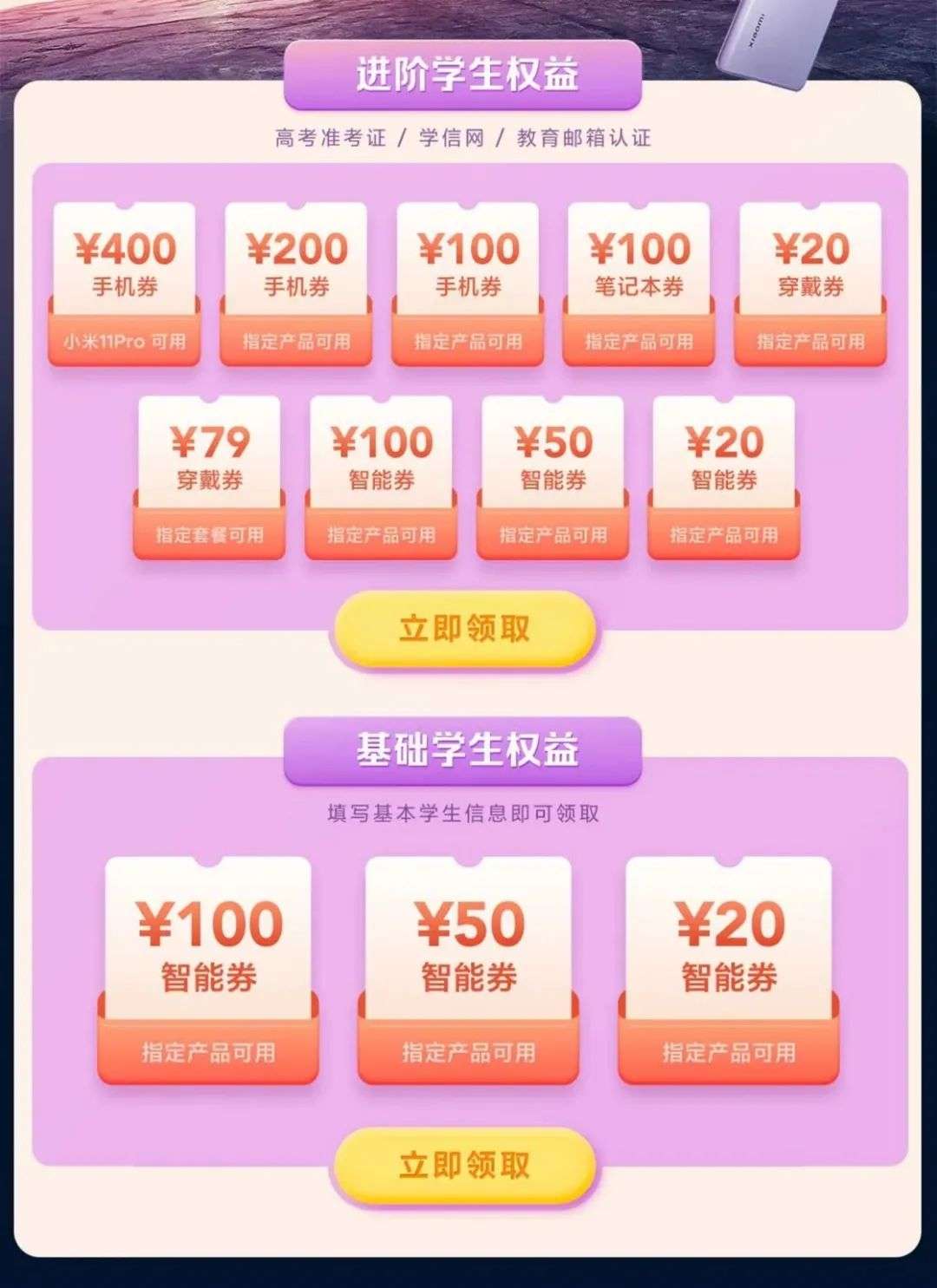 🧑🎓 权益:指定机型折扣,限量优惠券,抽奖活动等