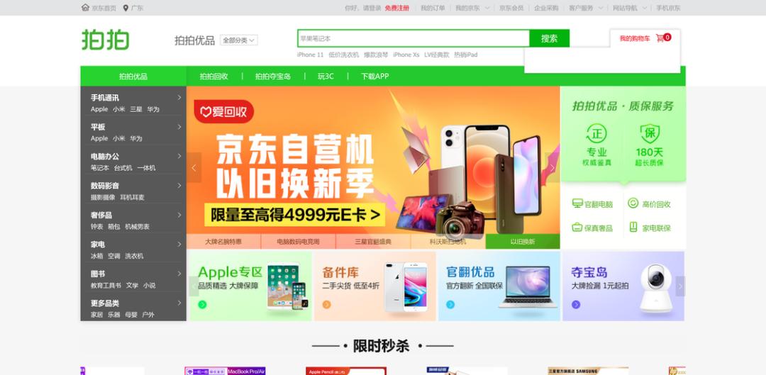 在国内,许多无暇经营自有渠道的品牌会指定京东作为官方翻新产品的线上代理经销商,如 戴尔授权智选官翻机专卖店 对应境外的Dell Outlet 、 联想 ThinkPad 官翻授权旗舰店 对应境外的Lenovo Outlet等。 京东拍拍优品 汇聚了绝大部分此类官翻硬件,还包括大量二手产品,涵盖手机、电器、图书、家居、鞋服、奢侈品等品类,由京东官方担保,提供以旧换新等服务。
