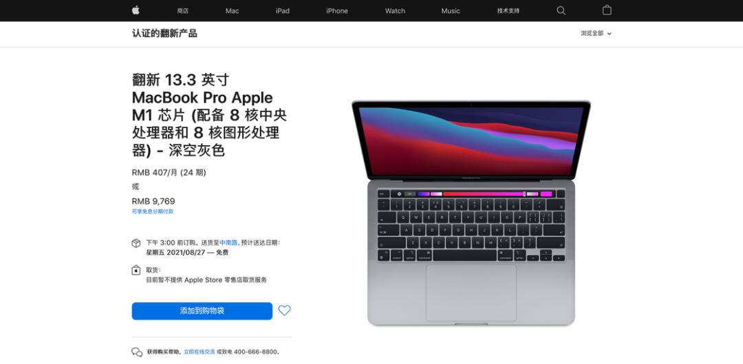 在价格方面,大部分 Apple 认证的翻新产品定价均低于新机 20% 左右,同样低于同型号使用教育优惠后的价格,如果不需要 AirPods,性价比更高。以配备 Apple M1 芯片、8 GB 内存、512 GB 固态硬盘的 13.3 英寸 MacBook Pro 为例,官翻定价为 9769 元,可享 24 期免息分期,同款的教育商店定价则为 10699 元,降幅近 1000 元。