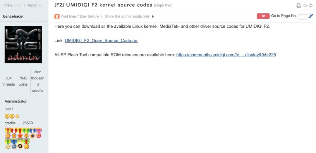 8月26日,UMIDIGI把源代码发表在了官网的论坛上面。