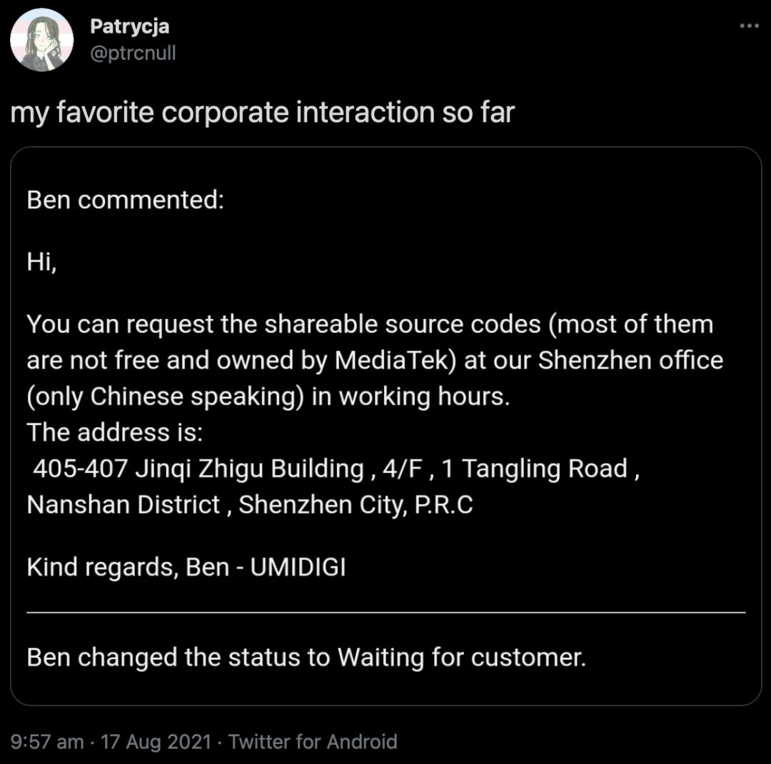 事情要从一位波兰的开发者希望 UMIDIGI公司开源他们的手机内核源码说起。