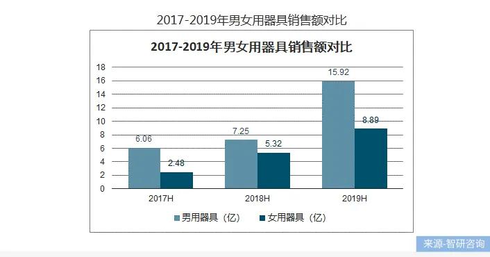 另一方面,智研咨询发布的数据显示,女用器具销售额在不断增长中,2018、2019年增长率分别达到114.4%和67.2%,远超男性市场的增幅。