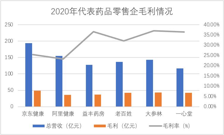 如果将上述企业分为两大阵营,京东健康和阿里健康为代表的互联网企业其毛利率较之剩余传统药房企业要克制许多。