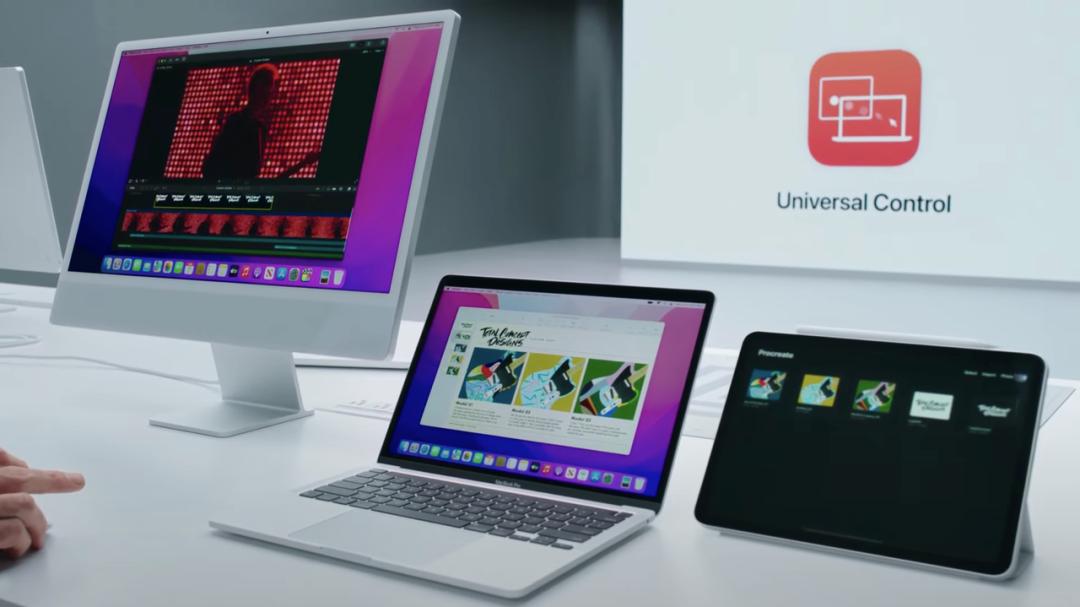 到了 2021 年,这一功能又进一步加码,引入了 Universal Control 功能,让用户反过来,直接使用 Mac 的键盘与触摸板控制 iPad 的。整个体验演示看起来非常简单无缝,甚至可以实时定位到不同设备之间摆放的位置,无需手动设置设备排列。