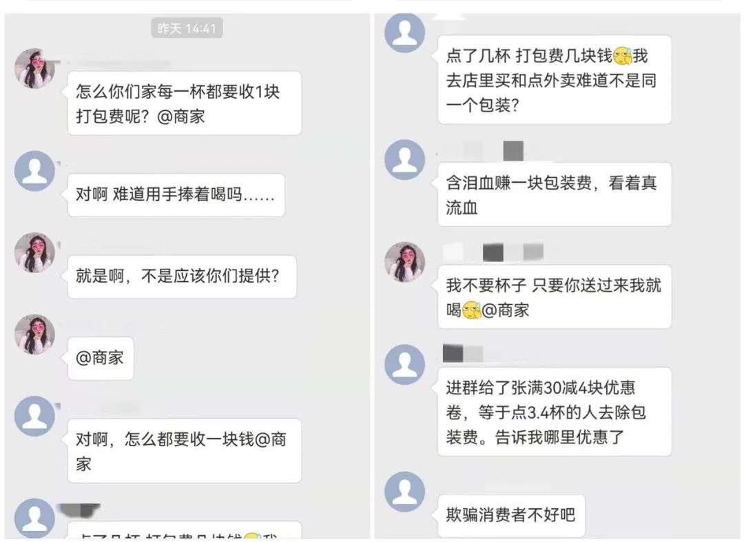 △消费者对打包费的吐槽,图片来源:微博