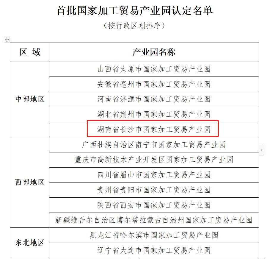 9月1日,商务部网站公示首批全国加工贸易产业园审核认定名单,长沙市加工贸易产业园名列其中,成为全国首批13家国家加工贸易产业园之一。