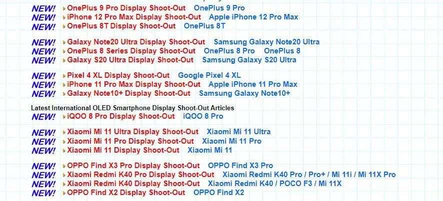 乍一听似乎是个绝无仅有的顶级评价,但如果你再多翻一下OPPO Find X3 Pro、一加 9 Pro、三星 S20 Ultra、iQOO 8 Pro等屏幕评测,你都能看到「接近教科书级别」的夸张比喻和 A+ 评级,这里面甚至还包括主打中端市场的Redmi K40。