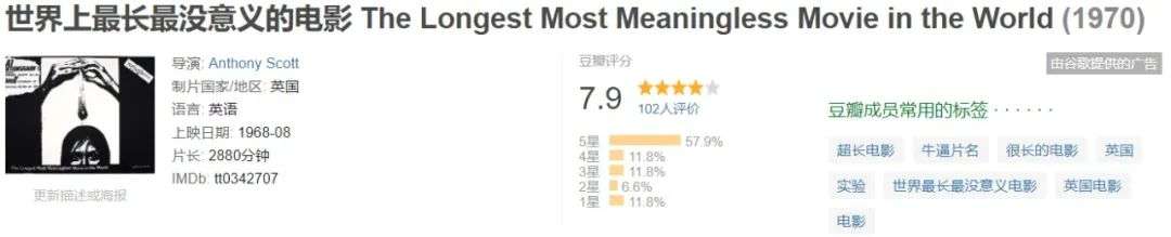 史上最长电影是1968年上映的《TheLongest Most Meaningless Movie in the World》