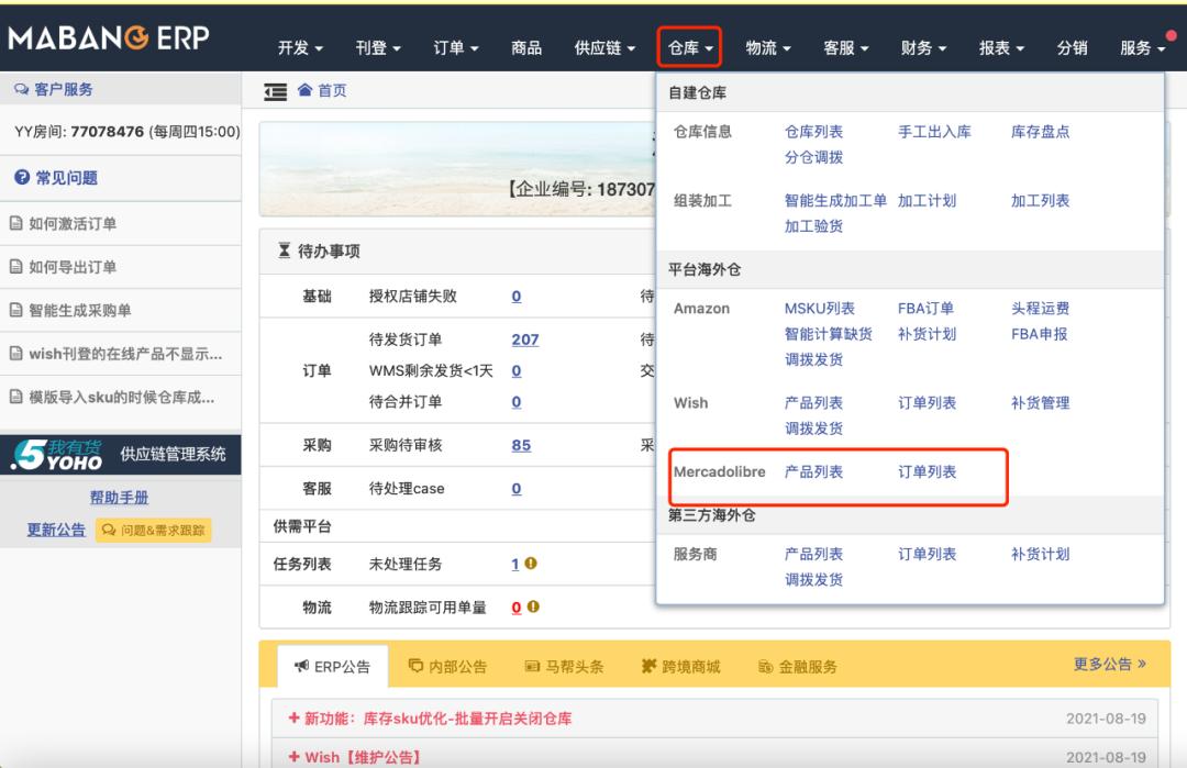可以直接从马帮ERP后台进入美客多海外仓啦!