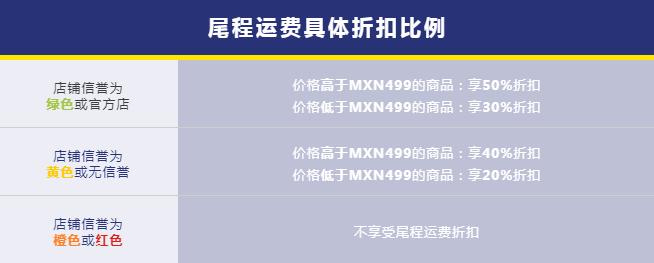 对此,美客多也已推出针对尾程派送费的优惠政策,依据卖家店铺信誉等级、商品价格等提供相应的运费折扣。