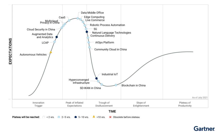 图片来源:Gartner, Hype Cycle for ICT in China, 2021