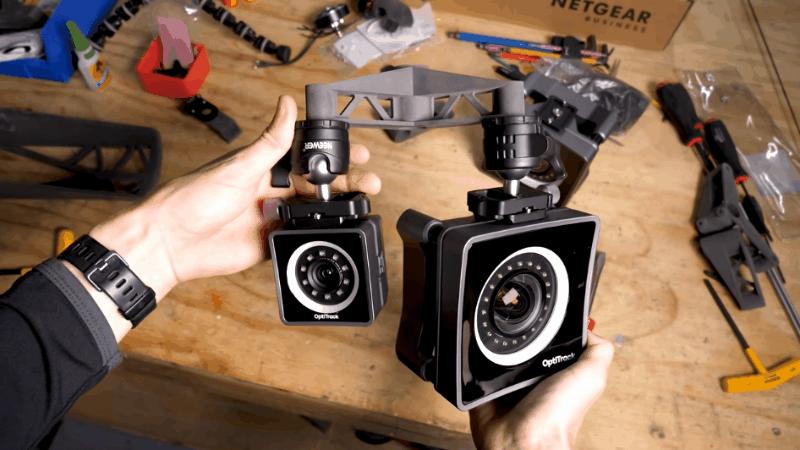 那么要让自动弓实现瞄准的话,就得先给它装上「眼睛」,Shane 买来了 OptiTrack 的动态捕捉套装给弓、箭、靶进行定位,然后自己用 Python 编写软件,实现对物体的跟踪定位工作。