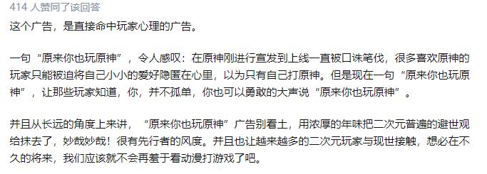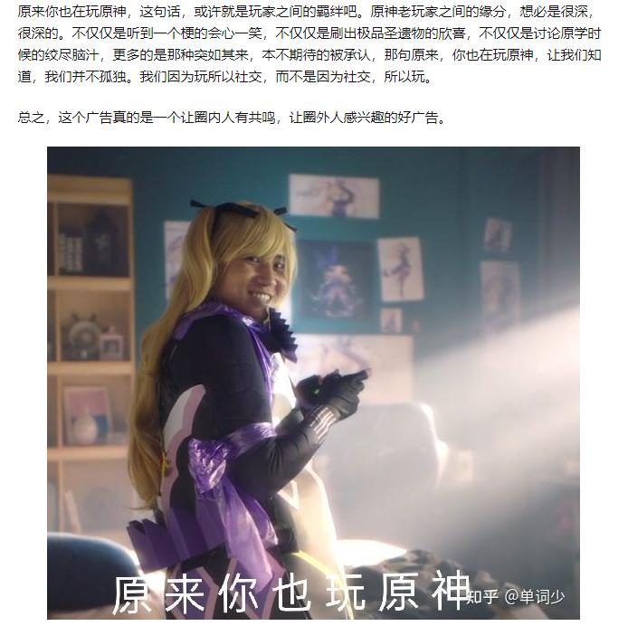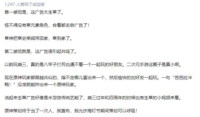我们一起看下来自知乎内关于“如何评价原神硬核广告《原来你也玩原神》?”问题的一些回答: