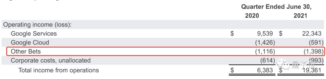 谷歌最新一期2021 Q2季度财报显示,包括DeepMind、智能医疗Verily在内的其他业务依旧亏损。